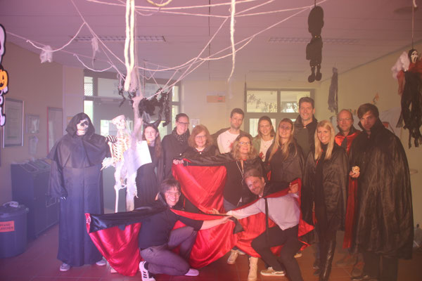Auch an der W.i.R. waren heute geisterhafte Gestalten zugegen. Unsere SMV hat eine markerschütternde, schrecklich-schaurige Pausenshow organisiert, komplett mit DJ und Deko direkt aus dem Reich der Toten. Ein sehr gelungenes Halloween-Event!